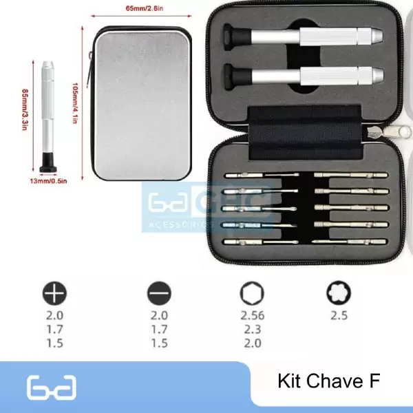Ter um kit portátil com diversas bases de chave e pontas de diferentes medidas, incluindo fenda, Philips, PoziDrive e Torx, oferece várias vantagens e aplicações: